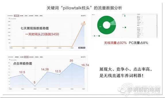 2.无线端和PC端的点击率、点击单价数据,差别较大,混在一起,容易导致数据分析上错误的结论;