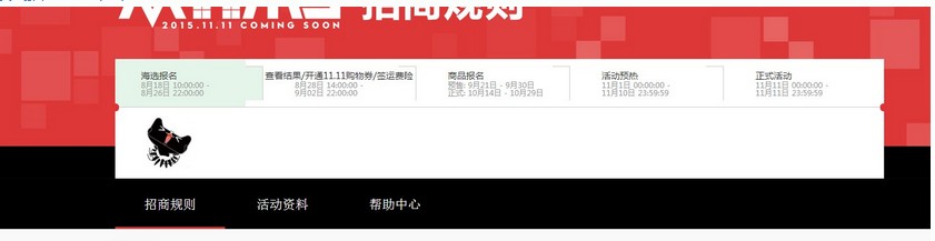 2015年天猫双11活动,已于8月18日10:00:00开始招商。