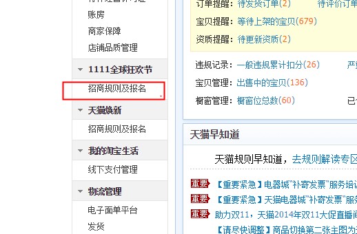 2丶进入商家中左侧导航栏,1111全球狂欢节-招商规则及报名。